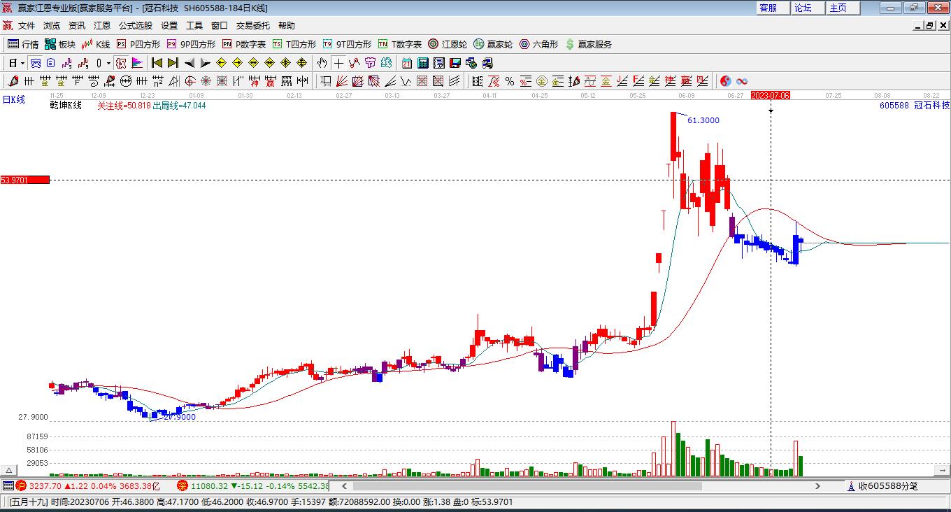 今日冠石科技605588以大陽線收盤,今天是關(guān)鍵時(shí)間窗口