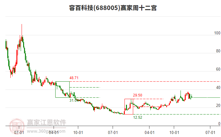 依據贏家十二宮結構模型工具展示,本周股價上穿2023年7月28日形成的下跌結構底部線31.04。依據贏家十二宮多空能量守恒規(guī)則,本周股價如能有效站穩(wěn)下跌結構底部線31.04位置,多方能量將占據主導,上方將在警戒線42.17位置再次尋找新的多空能量平衡位;若股價再次跌破底部線,調整周期也將延長,下方多空平衡位可尋找前期重要低點。