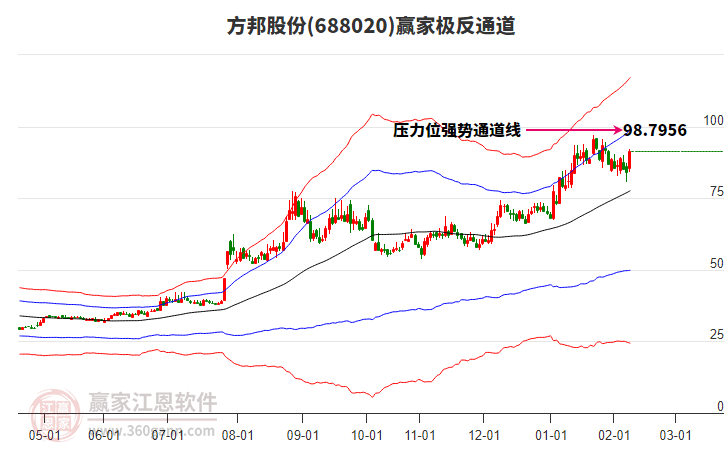 依據(jù)贏家江恩系統(tǒng)趨勢(shì)工具極反通道分析判斷方邦股份688020運(yùn)行在生命線以下弱勢(shì)區(qū)域,根據(jù)規(guī)則該股短線輕倉(cāng)參與,股價(jià)跌至弱勢(shì)外軌線后波段再結(jié)合其它工具信號(hào)建倉(cāng)。應(yīng)用口訣是:生命線上強(qiáng)勢(shì)走,生命線下難抬頭;紅黃兩條外軌線,壓力支撐顯勢(shì)頭。