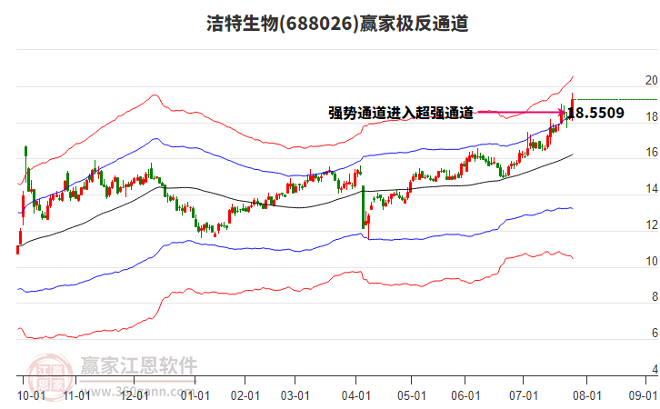 依據(jù)贏家江恩系統(tǒng)趨勢(shì)工具極反通道分析判斷潔特生物688026運(yùn)行在生命線以下弱勢(shì)區(qū)域,根據(jù)規(guī)則該股短線輕倉(cāng)參與,股價(jià)跌至弱勢(shì)外軌線后波段再結(jié)合其它工具信號(hào)建倉(cāng)。應(yīng)用口訣是:生命線上強(qiáng)勢(shì)走,生命線下難抬頭;紅黃兩條外軌線,壓力支撐顯勢(shì)頭。