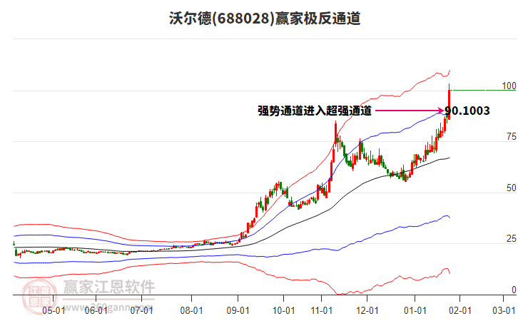 今天沃爾德最高價(jià)96.0挑戰(zhàn)了贏家極反通道工具藍(lán)色外軌線,受到藍(lán)色外軌線強(qiáng)力壓制,最終收盤停留在在藍(lán)色外軌線與生命線上方的強(qiáng)勢(shì)通道區(qū)域。沃爾德近10個(gè)交易日漲幅17.9%。