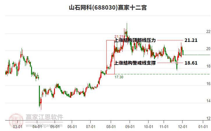 688030山石網(wǎng)科處于贏家江恩多頭主線形態(tài),今日重心上移,短期持續(xù)上漲,從11月21日形成中期底分型后,行情經(jīng)歷一波上漲,突破前高形成中期初次筑底信號(hào),長(zhǎng)期處于多頭回調(diào)趨勢(shì)。山石網(wǎng)科目前多頭又再次反