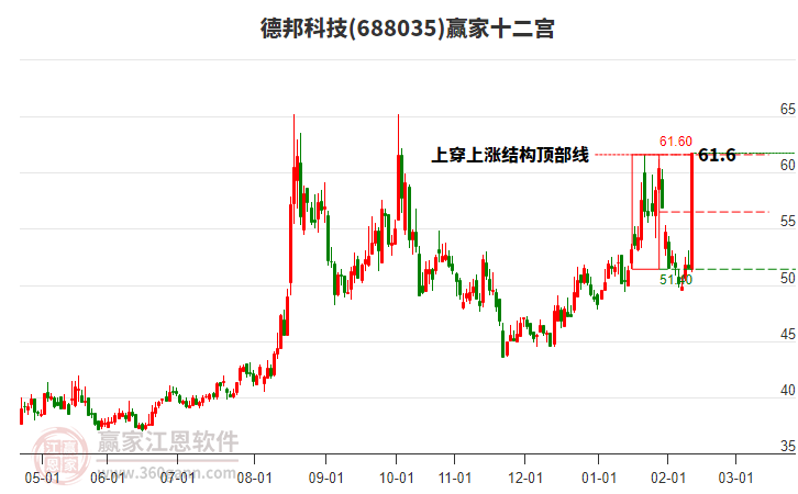 德邦科技688035今天,以收20cm漲停收盤,近一個(gè)月漲幅25.6%,今天K線上穿前方上漲結(jié)構(gòu)頂部