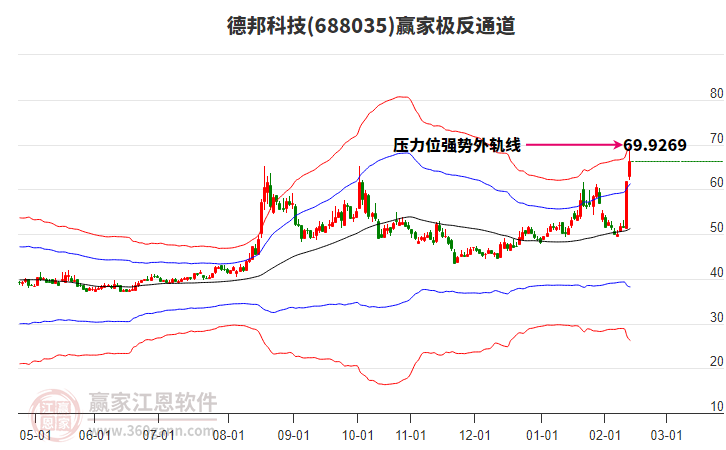 依據(jù)贏家江恩系統(tǒng)趨勢(shì)工具極反通道分析判斷德邦科技688035運(yùn)行在生命線以上強(qiáng)勢(shì)區(qū)域,根據(jù)規(guī)則該股可短線、波段結(jié)合操作;結(jié)合物極必反的原理通過分鐘圖做盤中差價(jià),應(yīng)用口訣是:生命線上強(qiáng)勢(shì)走,生命線下難抬頭;紅黃兩條外軌線,壓力支撐顯勢(shì)頭。