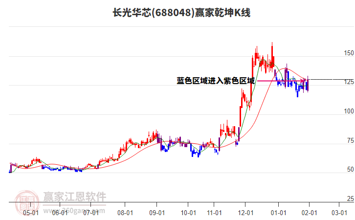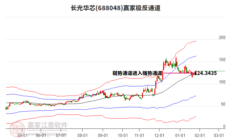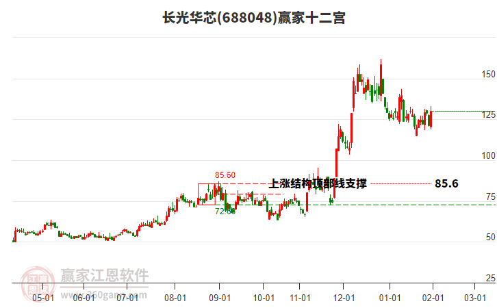 長光華芯(688048)處于贏家江恩多頭主線形態(tài),12月29日發(fā)出江恩筑頂信號后,經(jīng)過42日,今日再次發(fā)出江恩底分型并發(fā)出江恩筑底信號,中長期多頭趨勢依舊保持。長光華芯今日跳空高開,截止目前K線下影中