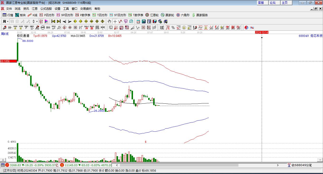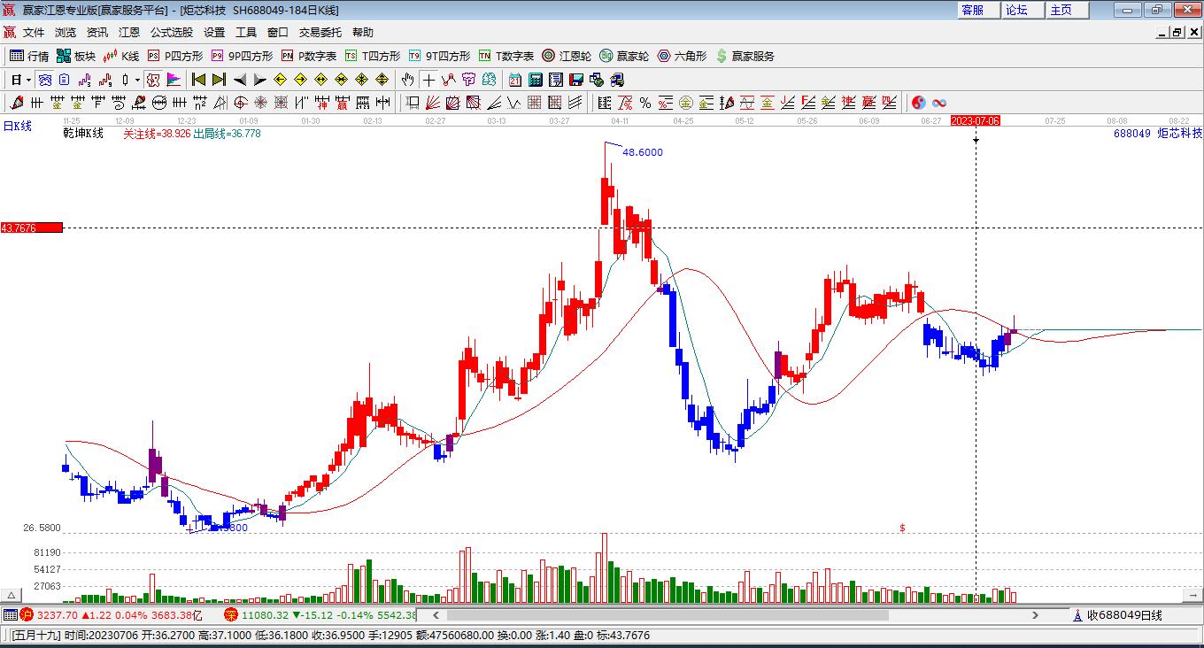 依據(jù)贏家江恩乾坤K線工具展示,目前股價處于關(guān)注線上方,本周K線以陽線收盤,收盤價處于出局線下方,近期2月6日出現(xiàn)低點,1月30日出現(xiàn)高點,近期圍繞關(guān)注線震蕩,近1周出現(xiàn)短線上行,依據(jù)贏家江恩乾坤K線工具展示,工具顯示依舊短線看空。