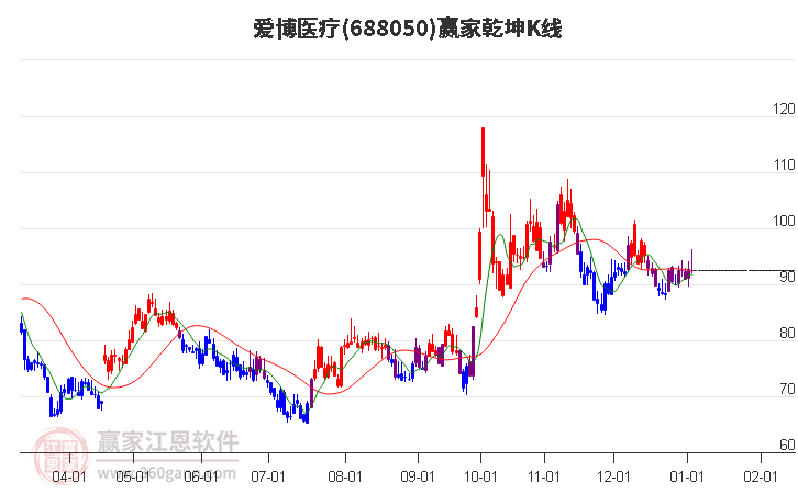 依據(jù)贏家江恩系統(tǒng)趨勢(shì)工具極反通道分析判斷愛(ài)博醫(yī)療688050運(yùn)行在生命線以上強(qiáng)勢(shì)區(qū)域,根據(jù)規(guī)則該股可短線、波段結(jié)合操作;結(jié)合物極必反的原理通過(guò)分鐘圖做盤中差價(jià),應(yīng)用口訣是:生命線上強(qiáng)勢(shì)走,生命線下難抬頭;紅黃兩條外軌線,壓力支撐顯勢(shì)頭。