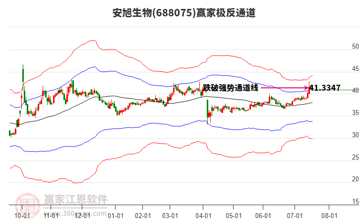 周一688075安旭生物最高價(jià)43.65挑戰(zhàn)了贏家極反通道工具藍(lán)色外軌線,受到藍(lán)色外軌線強(qiáng)力壓制,最終收盤(pán)停留在在藍(lán)色外軌線與生命線上方的強(qiáng)勢(shì)通道區(qū)域。688075安旭生物近10個(gè)交易日漲幅5.86%