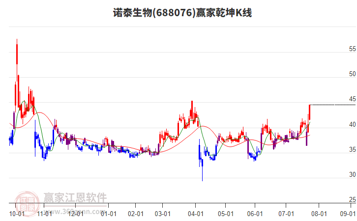 ST諾泰(688076)處于贏家江恩多頭主線形態(tài),7月22日發(fā)出江恩筑頂信號后,經(jīng)過104日,今日再次發(fā)出江恩底分型并發(fā)出江恩筑底信號,中期多頭趨勢延續(xù),但長期處于回調(diào)中。ST諾泰今日低開下跌,截止目