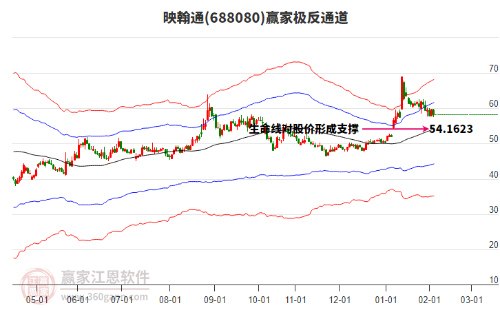 依據(jù)贏家江恩系統(tǒng)趨勢工具極反通道分析判斷映翰通688080運(yùn)行在生命線以上強(qiáng)勢區(qū)域,根據(jù)規(guī)則該股可短線、波段結(jié)合操作;結(jié)合物極必反的原理通過分鐘圖做盤中差價(jià),應(yīng)用口訣是:生命線上強(qiáng)勢走,生命線下難抬頭;紅黃兩條外軌線,壓力支撐顯勢頭。