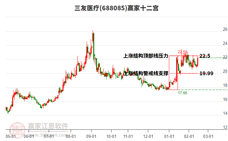 三友醫(yī)療(688085)處于贏家江恩多頭主線形態(tài),今日重心上移,短期持續(xù)上漲,從12月16日形成中期底分型后,行情經(jīng)歷一波上漲,突破前高形成中期初次筑底信號,長期處于多頭上漲趨勢。三友醫(yī)療今日低開,截