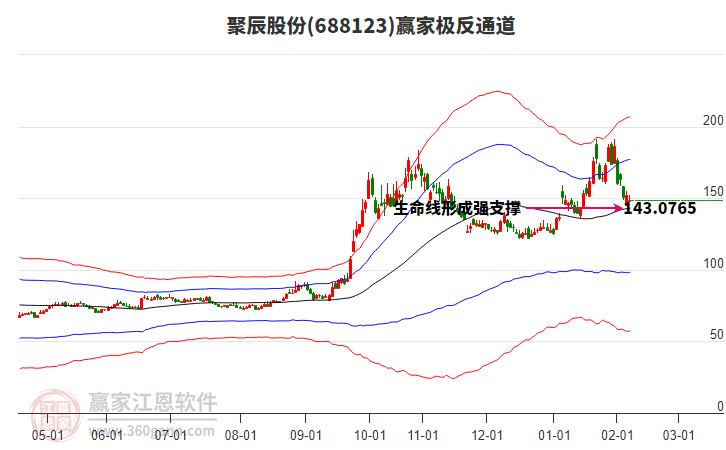 依據(jù)贏家江恩系統(tǒng)趨勢工具極反通道分析判斷聚辰股份688123運行在生命線以上強勢區(qū)域,根據(jù)規(guī)則該股可短線、波段結(jié)合操作;結(jié)合物極必反的原理通過分鐘圖做盤中差價,應(yīng)用口訣是:生命線上強勢走,生命線下難抬頭;紅黃兩條外軌線,壓力支撐顯勢頭。