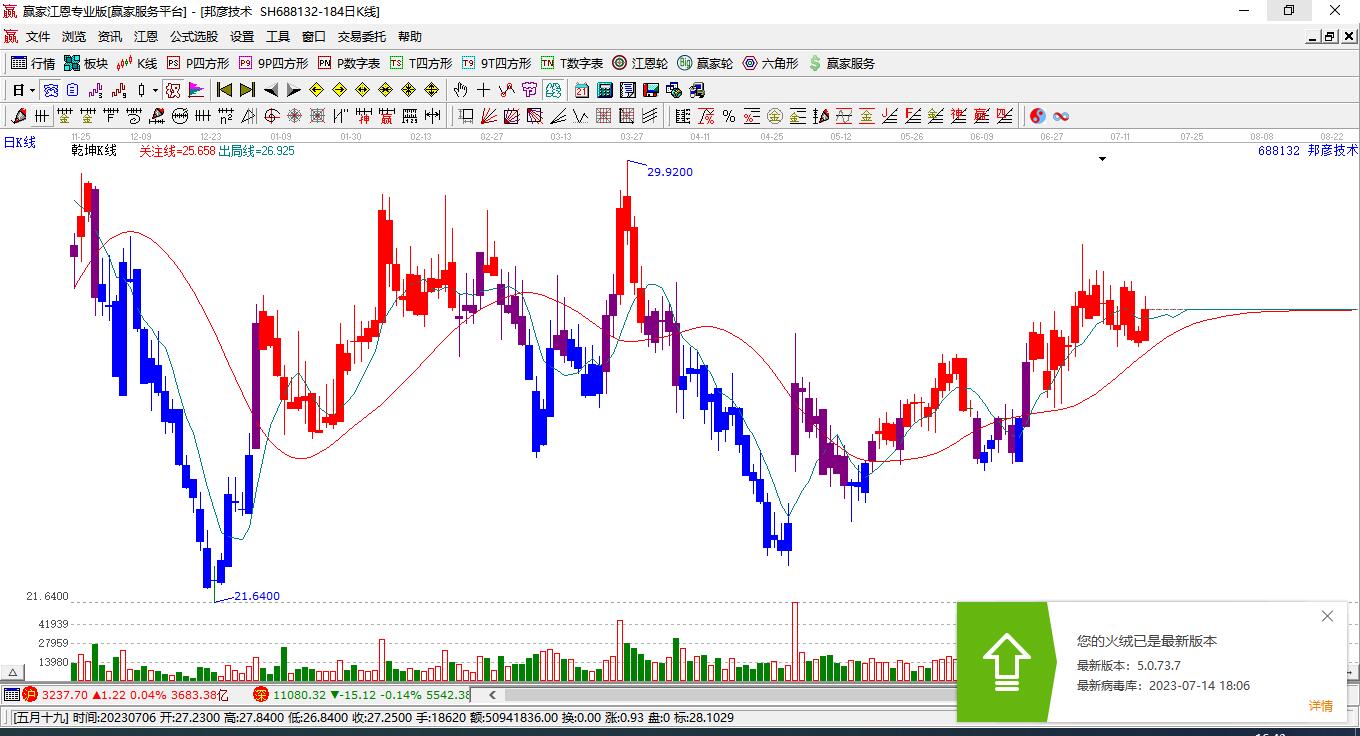 邦彥技術(shù)(688132)處于贏家江恩多頭主線形態(tài),今日重心上移,短期持續(xù)上漲,從12月17日形成中期底分型后,行情經(jīng)歷一波上漲,突破前高形成中期初次筑底信號,長期處于多頭上漲趨勢。邦彥技術(shù)今日跳空高開