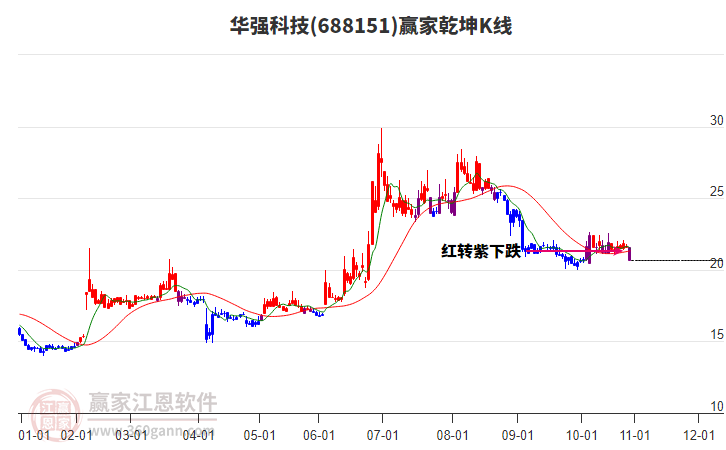 依據(jù)贏家江恩系統(tǒng)趨勢工具極反通道分析判斷華強科技688151運行在生命線以下弱勢區(qū)域,根據(jù)規(guī)則該股短線輕倉參與,股價跌至弱勢外軌線后波段再結(jié)合其它工具信號建倉。應(yīng)用口訣是:生命線上強勢走,生命線下難抬頭;紅黃兩條外軌線,壓力支撐顯勢頭。