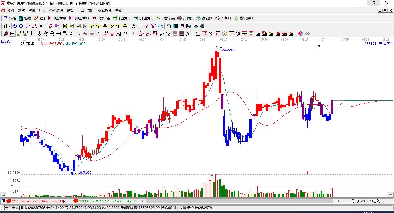 688171緯德信息最高價(jià)挑戰(zhàn)生命線 小幅上漲5.69%