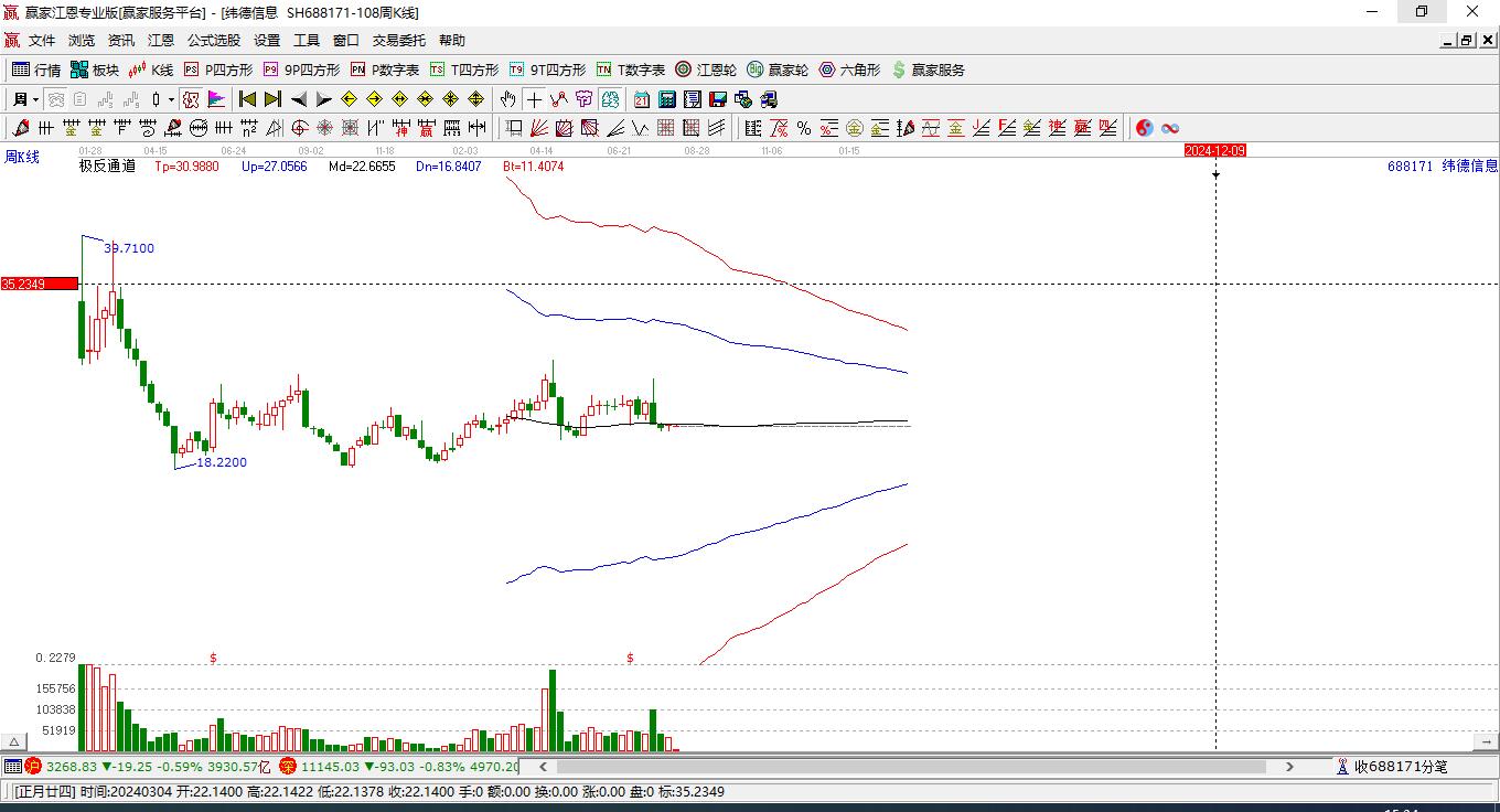12月30日688171緯德信息最高價(jià)47.87挑戰(zhàn)了贏家極反通道工具生命線,受到生命線強(qiáng)力壓制,最終收盤停留在在生命線與藍(lán)色下軌線上方的弱勢通道區(qū)域。688171緯德信息近10個(gè)交易日漲幅4.69%