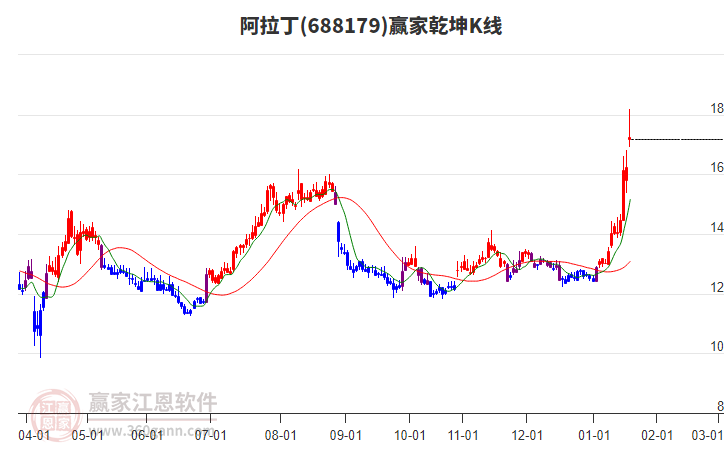 在1月第4周(1月19日-1月23日)中688179阿拉丁周漲幅為微漲4.02%。本周最高價為18.49元,出現在1月21日,最低價為15.39元,出現在1月19日。