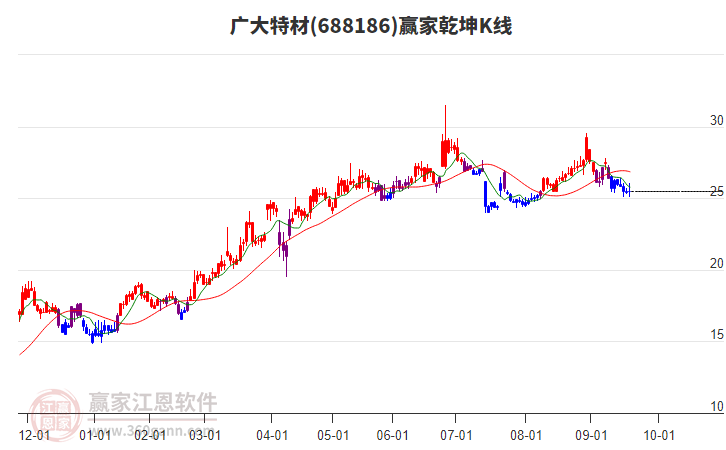 依據(jù)贏家江恩系統(tǒng)趨勢(shì)工具極反通道分析判斷廣大特材688186運(yùn)行在生命線以上強(qiáng)勢(shì)區(qū)域,根據(jù)規(guī)則該股可短線、波段結(jié)合操作;結(jié)合物極必反的原理通過分鐘圖做盤中差價(jià),應(yīng)用口訣是:生命線上強(qiáng)勢(shì)走,生命線下難抬頭;紅黃兩條外軌線,壓力支撐顯勢(shì)頭。