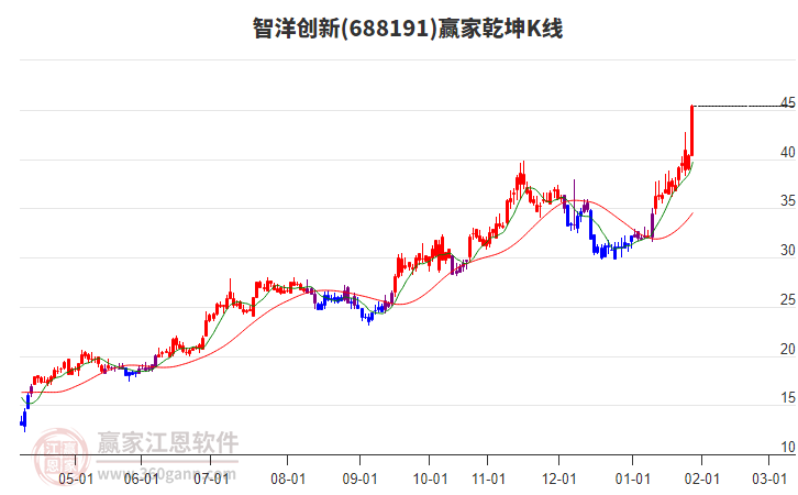依據(jù)贏家江恩系統(tǒng)趨勢工具極反通道分析判斷智洋創(chuàng)新688191運行在生命線以上強勢區(qū)域,根據(jù)規(guī)則該股可短線、波段結合操作;結合物極必反的原理通過分鐘圖做盤中差價,應用口訣是:生命線上強勢走,生命線下難抬頭;紅黃兩條外軌線,壓力支撐顯勢頭。