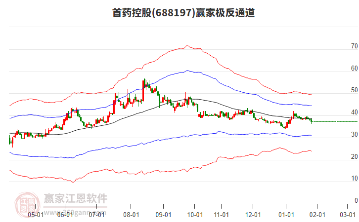 依據(jù)贏家江恩系統(tǒng)趨勢(shì)工具極反通道分析判斷首藥控股688197運(yùn)行在生命線以下弱勢(shì)區(qū)域,根據(jù)規(guī)則該股短線輕倉參與,股價(jià)跌至弱勢(shì)外軌線后波段再結(jié)合其它工具信號(hào)建倉。應(yīng)用口訣是:生命線上強(qiáng)勢(shì)走,生命線下難抬頭;紅黃兩條外軌線,壓力支撐顯勢(shì)頭。