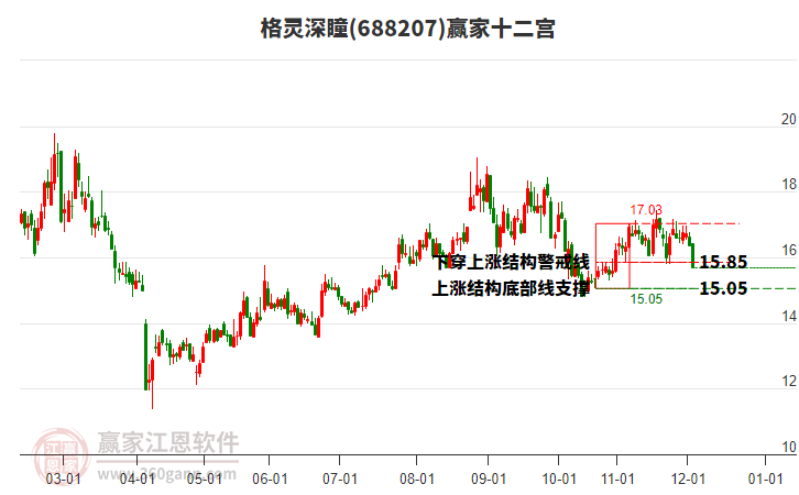 當(dāng)前股價(jià)位于前期2026年2月6日形成的下跌結(jié)構(gòu)頂部線18.43與警戒線17.12之間,該股自近期低點(diǎn)15.8,漲至今日17.55,共上漲1.75元,漲幅11.08%。依據(jù)贏家十二宮多空能量守恒規(guī)則,下跌結(jié)構(gòu)警戒線是多空能量平衡爭奪點(diǎn),突破或跌破往往意味著平衡打破。當(dāng)前股價(jià)若能站穩(wěn)警戒線位置,多方能量有望主導(dǎo)上攻,向上頂部線位置尋找多空能量平衡位。如股價(jià)不能有效站穩(wěn)警戒線,則空方能量主導(dǎo)下探,向底部線附近尋找新的多空能量平衡位。