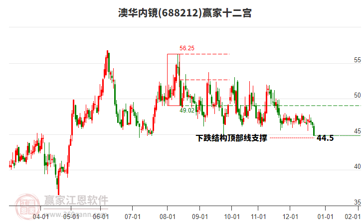 688212澳華內(nèi)鏡處于贏家江恩空頭中期反彈形態(tài),從12月11日形成頂分型后持續(xù)下跌,重心下移,今日跌破前低形成短期初次筑頂信號(hào),短期多頭趨勢(shì)已被破壞,中期多頭趨勢(shì)延續(xù),但長(zhǎng)期處于下跌中。澳華內(nèi)鏡今日