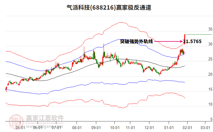 目前688216氣派科技最高價26.41上穿了贏家極反通道工具藍色外軌線,受到藍色外軌線強力壓制,最終收盤停留在在藍色外軌線與生命線上方的強勢通道區(qū)域。688216氣派科技近10個交易日漲幅15.75
