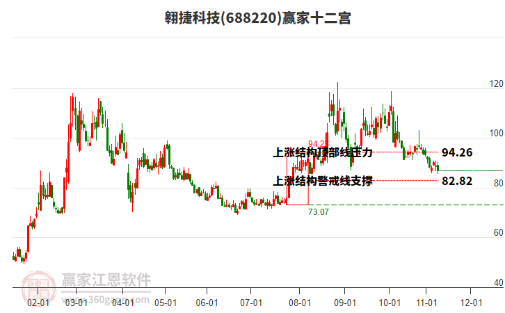 依據(jù)贏家江恩系統(tǒng)趨勢工具極反通道分析判斷翱捷科技688220運行在生命線以上強勢區(qū)域,根據(jù)規(guī)則該股可短線、波段結(jié)合操作;結(jié)合物極必反的原理通過分鐘圖做盤中差價,應用口訣是:生命線上強勢走,生命線下難抬頭;紅黃兩條外軌線,壓力支撐顯勢頭。
