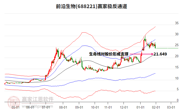 依據(jù)贏家江恩系統(tǒng)趨勢工具極反通道分析判斷前沿生物688221運行在生命線以上強勢區(qū)域,根據(jù)規(guī)則該股可短線、波段結(jié)合操作;結(jié)合物極必反的原理通過分鐘圖做盤中差價,應(yīng)用口訣是:生命線上強勢走,生命線下難抬頭;紅黃兩條外軌線,壓力支撐顯勢頭。