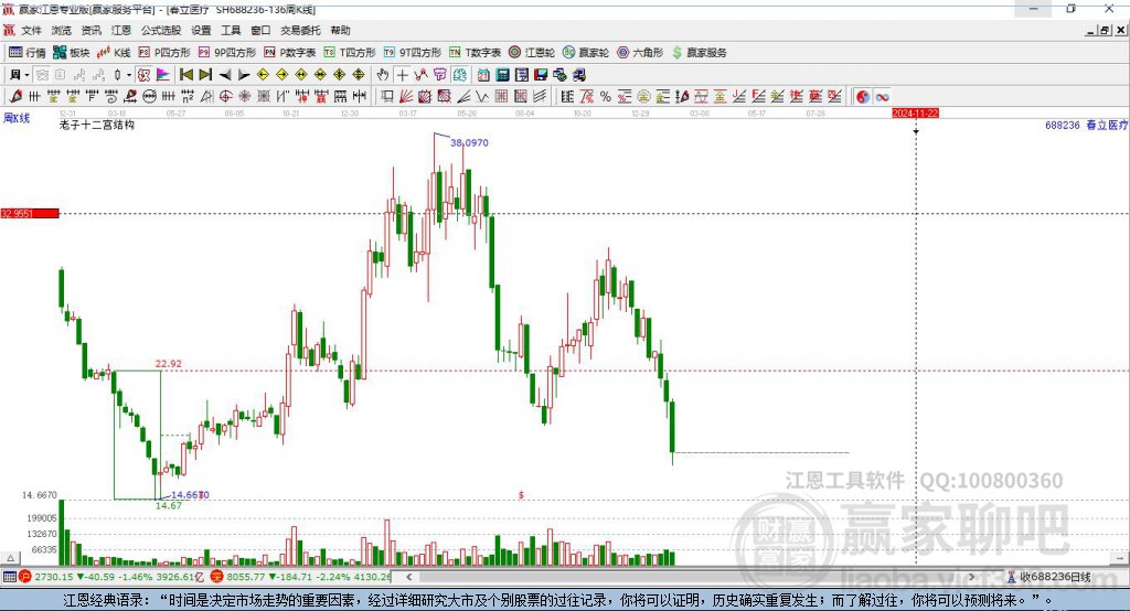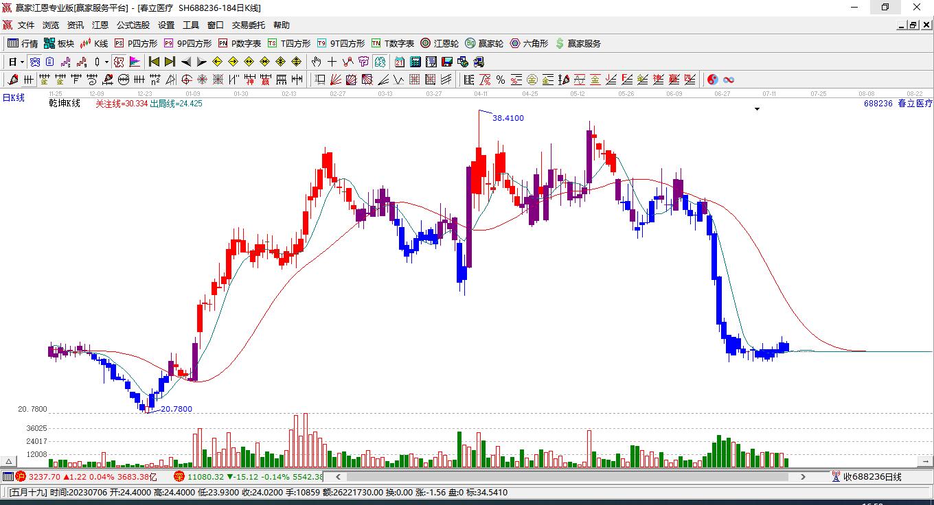 春立醫(yī)療(688236)處于贏家江恩多頭主線形態(tài),從12月29日形成底分型后持續(xù)上攻,今日突破前高形成初次江恩筑底信號,中長期目前都處于回調(diào)中。春立醫(yī)療今日雖高開,截止目前股價低于昨日收盤價,呈下跌走