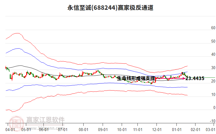 依據(jù)贏家江恩系統(tǒng)趨勢工具極反通道分析判斷永信至誠688244運行在生命線以上強勢區(qū)域,根據(jù)規(guī)則該股可短線、波段結(jié)合操作;結(jié)合物極必反的原理通過分鐘圖做盤中差價,應(yīng)用口訣是:生命線上強勢走,生命線下難抬頭;紅黃兩條外軌線,壓力支撐顯勢頭。