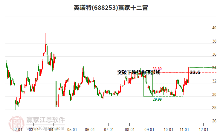 依據(jù)贏家江恩系統(tǒng)趨勢(shì)工具極反通道分析判斷英諾特688253運(yùn)行在生命線以下弱勢(shì)區(qū)域,根據(jù)規(guī)則該股短線輕倉(cāng)參與,股價(jià)跌至弱勢(shì)外軌線后波段再結(jié)合其它工具信號(hào)建倉(cāng)。應(yīng)用口訣是:生命線上強(qiáng)勢(shì)走,生命線下難抬頭;紅黃兩條外軌線,壓力支撐顯勢(shì)頭。
