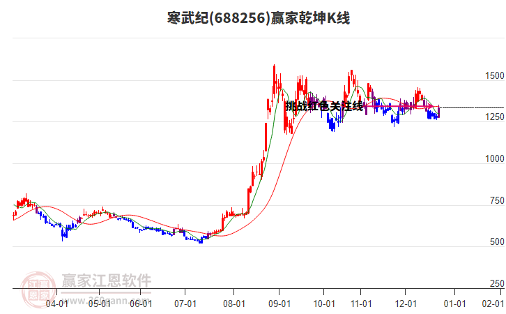 依據(jù)贏家江恩系統(tǒng)趨勢工具極反通道分析判斷寒武紀(jì)688256運行在生命線以上強勢區(qū)域,根據(jù)規(guī)則該股可短線、波段結(jié)合操作;結(jié)合物極必反的原理通過分鐘圖做盤中差價,應(yīng)用口訣是:生命線上強勢走,生命線下難抬頭;紅黃兩條外軌線,壓力支撐顯勢頭。