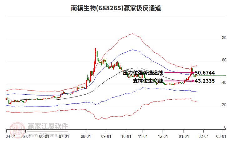 依據(jù)贏家江恩系統(tǒng)趨勢工具極反通道分析判斷南模生物688265運行在生命線以上強勢區(qū)域,根據(jù)規(guī)則該股可短線、波段結(jié)合操作;結(jié)合物極必反的原理通過分鐘圖做盤中差價,應用口訣是:生命線上強勢走,生命線下難抬頭;紅黃兩條外軌線,壓力支撐顯勢頭。