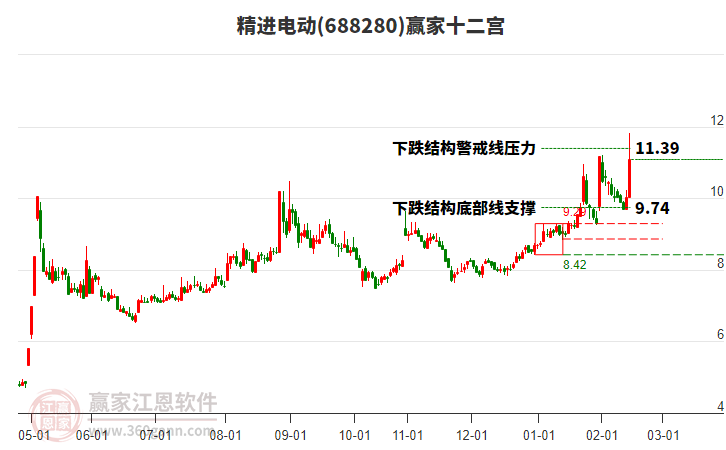 精進(jìn)電動(dòng)688280今天漲停,漲停突破上方紅色外軌線