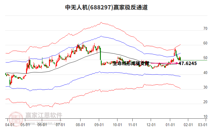 依據(jù)贏家江恩系統(tǒng)趨勢工具極反通道分析判斷中無人機688297運行在生命線以下弱勢區(qū)域,根據(jù)規(guī)則該股短線輕倉參與,股價跌至弱勢外軌線后波段再結合其它工具信號建倉。應用口訣是:生命線上強勢走,生命線下難抬頭;紅黃兩條外軌線,壓力支撐顯勢頭。