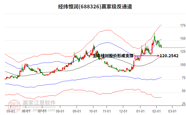 依據(jù)贏家江恩系統(tǒng)趨勢工具極反通道分析判斷經緯恒潤688326運行在生命線以上強勢區(qū)域,根據(jù)規(guī)則該股可短線、波段結合操作;結合物極必反的原理通過分鐘圖做盤中差價,應用口訣是:生命線上強勢走,生命線下難抬頭;紅黃兩條外軌線,壓力支撐顯勢頭。