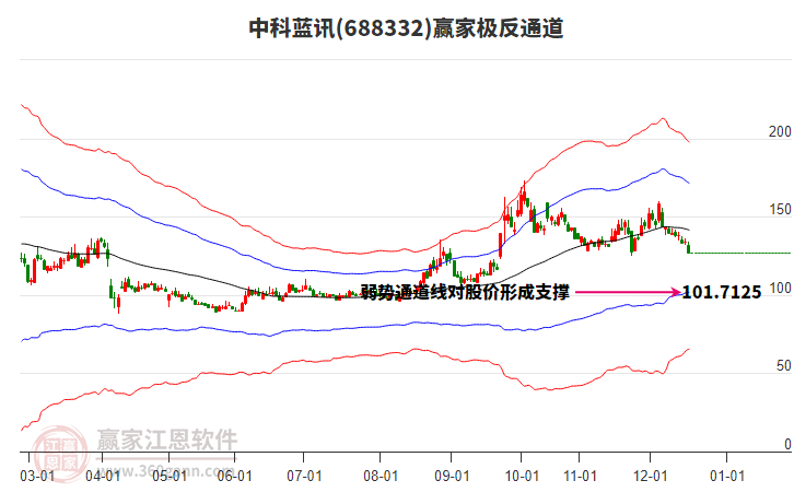 依據(jù)贏家江恩系統(tǒng)趨勢工具極反通道分析判斷中科藍(lán)訊688332運(yùn)行在生命線以上強(qiáng)勢區(qū)域,根據(jù)規(guī)則該股可短線、波段結(jié)合操作;結(jié)合物極必反的原理通過分鐘圖做盤中差價(jià),應(yīng)用口訣是:生命線上強(qiáng)勢走,生命線下難抬頭;紅黃兩條外軌線,壓力支撐顯勢頭。