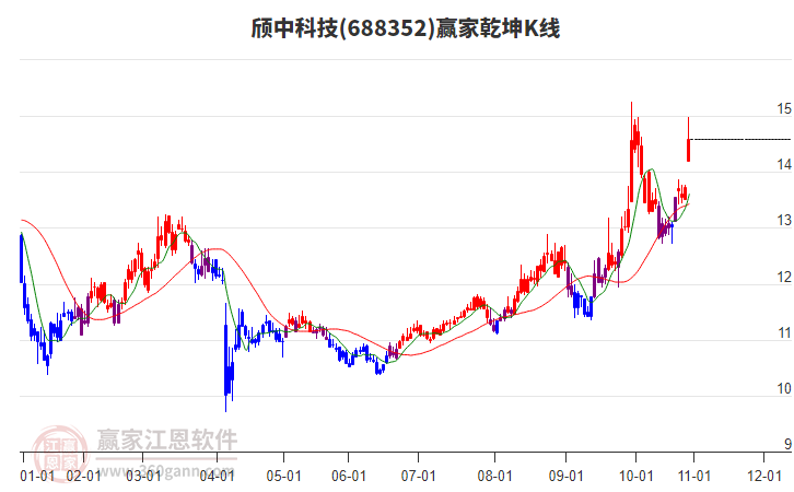 頎中科技(688352)低開收光腳大陽線,今天收盤價為16.68