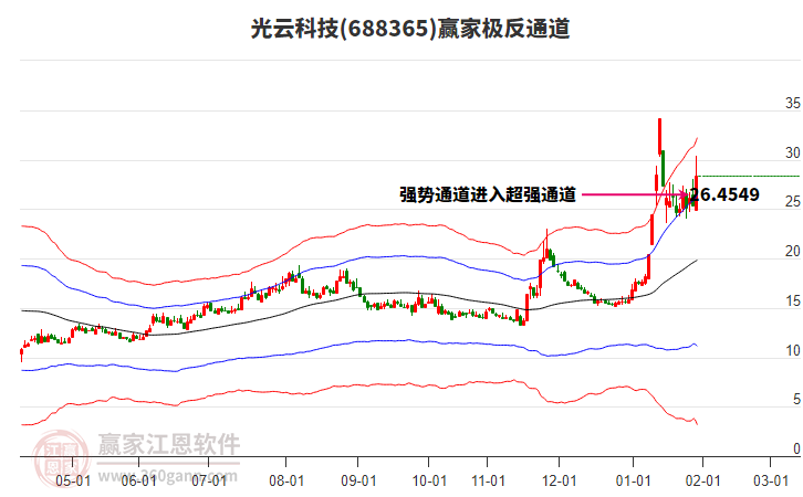 依據(jù)贏家江恩系統(tǒng)趨勢工具極反通道分析判斷光云科技688365運行在生命線以上強勢區(qū)域,根據(jù)規(guī)則該股可短線、波段結(jié)合操作;結(jié)合物極必反的原理通過分鐘圖做盤中差價,應(yīng)用口訣是:生命線上強勢走,生命線下難抬頭;紅黃兩條外軌線,壓力支撐顯勢頭。