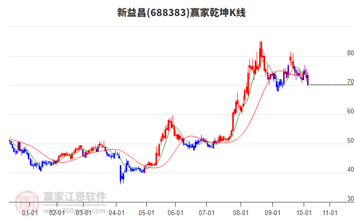 新益昌(688383)處于贏家江恩多頭次主線形態(tài),12月4日發(fā)出江恩筑底信號后,經(jīng)過15日,今日形成短期筑頂信號,短期多頭趨勢已被破壞,中期多頭趨勢延續(xù),但長期處于回調(diào)中。新益昌目前K線為光頭小陰線,