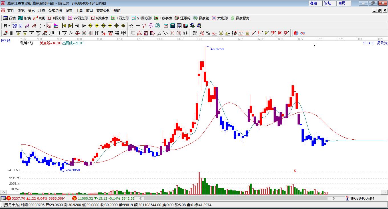 凌云光在高點45.2后,回調(diào)了5.25元 CPO概念近7天下跌2.3%