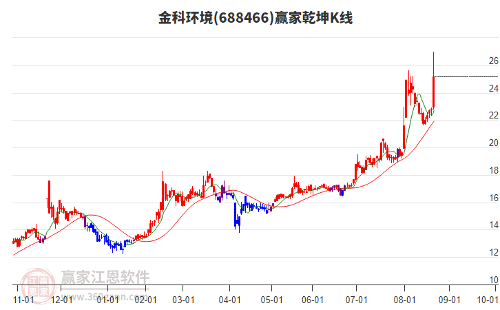 依據(jù)贏家江恩系統(tǒng)趨勢工具極反通道分析判斷金科環(huán)境688466運(yùn)行在生命線以上強(qiáng)勢區(qū)域,根據(jù)規(guī)則該股可短線、波段結(jié)合操作;結(jié)合物極必反的原理通過分鐘圖做盤中差價,應(yīng)用口訣是:生命線上強(qiáng)勢走,生命線下難抬頭;紅黃兩條外軌線,壓力支撐顯勢頭。
