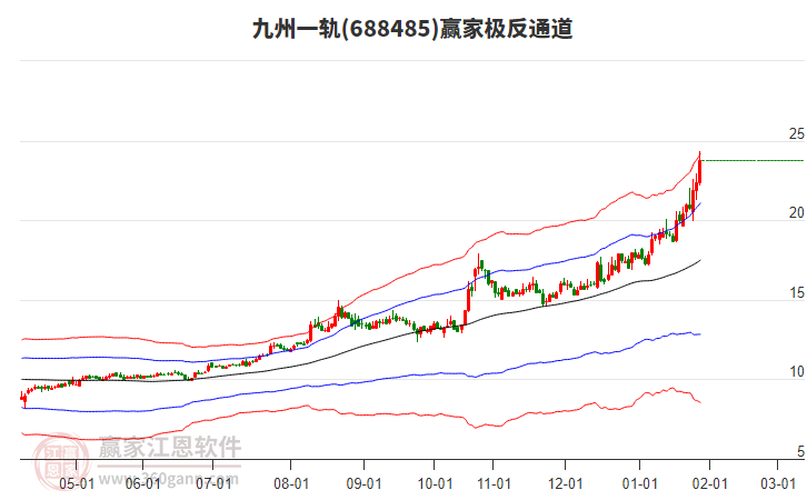 當天九州一軌688485最高價24.33挑戰(zhàn)了贏家極反通道工具上方紅色外軌線,受到上方紅色外軌線強力壓制,最終收盤停留在在上方紅色外軌線與藍色外軌線上方的超強通道區(qū)域。九州一軌688485近10個交易