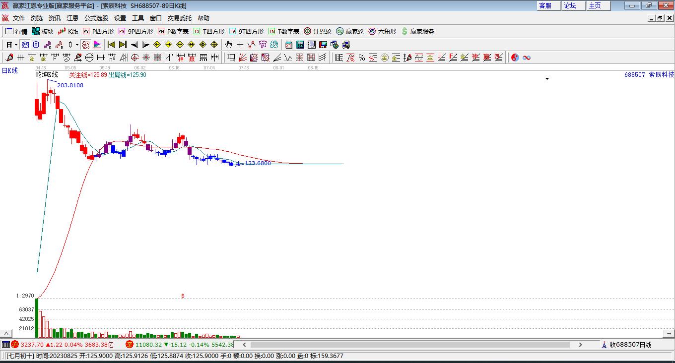 本周688507索辰科技報收于123.2元,較上周的117.0上漲5.3%,綜合兩個工具的分析結(jié)果,目前處于近期高位,未來下跌風險隨著時間推移有增大可能性。