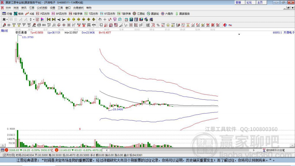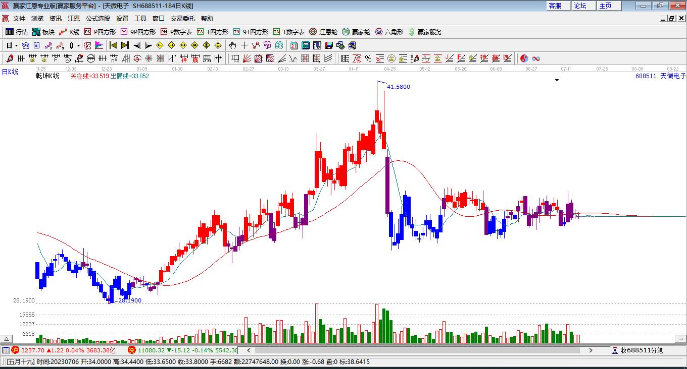 *ST天微(688511)處于贏家江恩多頭主線形態(tài),8月28日發(fā)出江恩筑頂信號后,經(jīng)過116日,今日再次發(fā)出江恩底分型并發(fā)出江恩筑底信號,中長期多頭趨勢依舊保持。*ST天微截至目前K線為上下影陽線,這