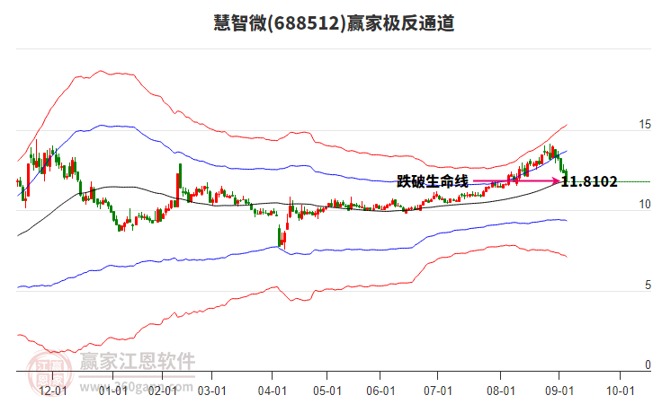 依據(jù)贏家江恩系統(tǒng)趨勢工具極反通道分析判斷慧智微688512運行在生命線以下弱勢區(qū)域,根據(jù)規(guī)則該股短線輕倉參與,股價跌至弱勢外軌線后波段再結合其它工具信號建倉。應用口訣是:生命線上強勢走,生命線下難抬頭;紅黃兩條外軌線,壓力支撐顯勢頭。