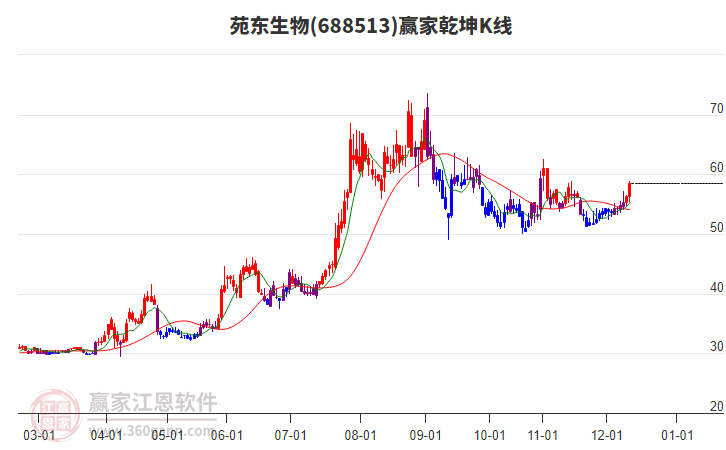 688513苑東生物根據(jù)贏家江恩極反通道趨勢(shì)工具展示,上方壓力位67.6854,下方支撐位57.7798。688513苑東生物處于贏家江恩多頭主線形態(tài),從1月28日形成底分型后持續(xù)上攻,今日突破前高形