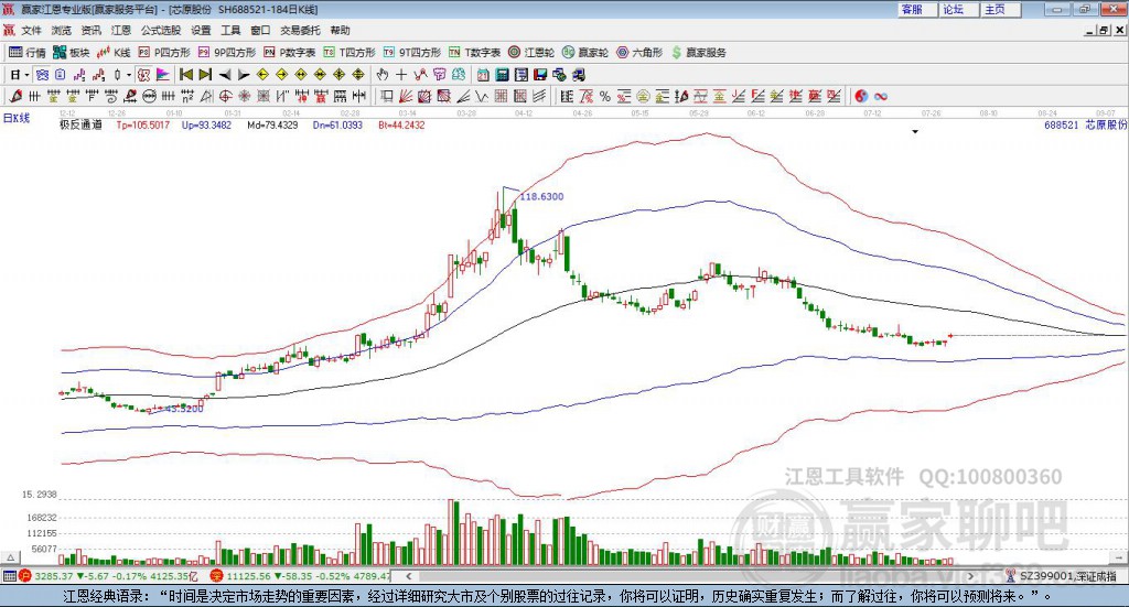 芯原股份688521最高價(jià)上穿上方紅色外軌線 小幅上漲7.36%