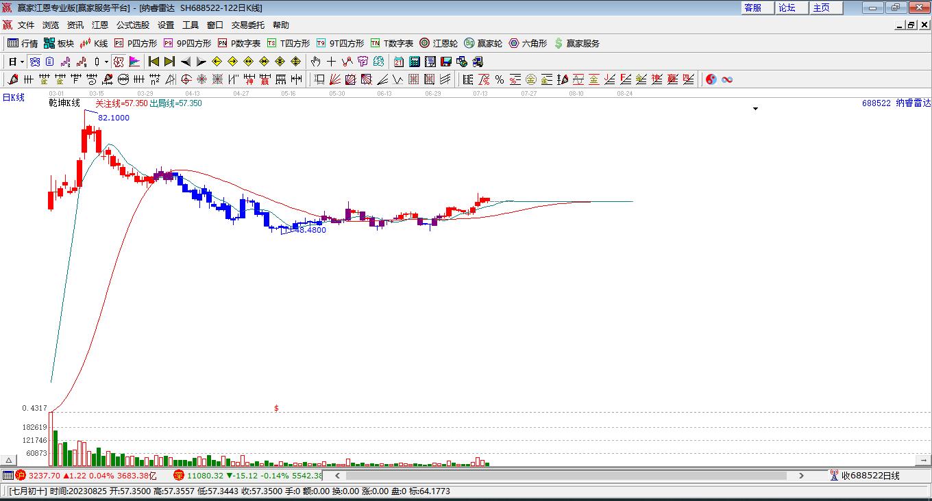 納睿雷達(dá)(688522)處于贏家江恩多頭主線形態(tài),12月25日發(fā)出江恩筑頂信號(hào)后,經(jīng)過50日,今日再次發(fā)出江恩底分型并發(fā)出江恩筑底信號(hào),中期雖然處于回調(diào)中,但長期多頭趨勢(shì)延續(xù)。納睿雷達(dá)今日低開,截止目